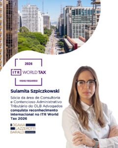 Temos o orgulho de informar que nossa sócia, Sulamita Szpiczkowski Alayon, foi novamente reconhecida na edição 2026 do renomado ranking internacional ITR World Tax, nomeada